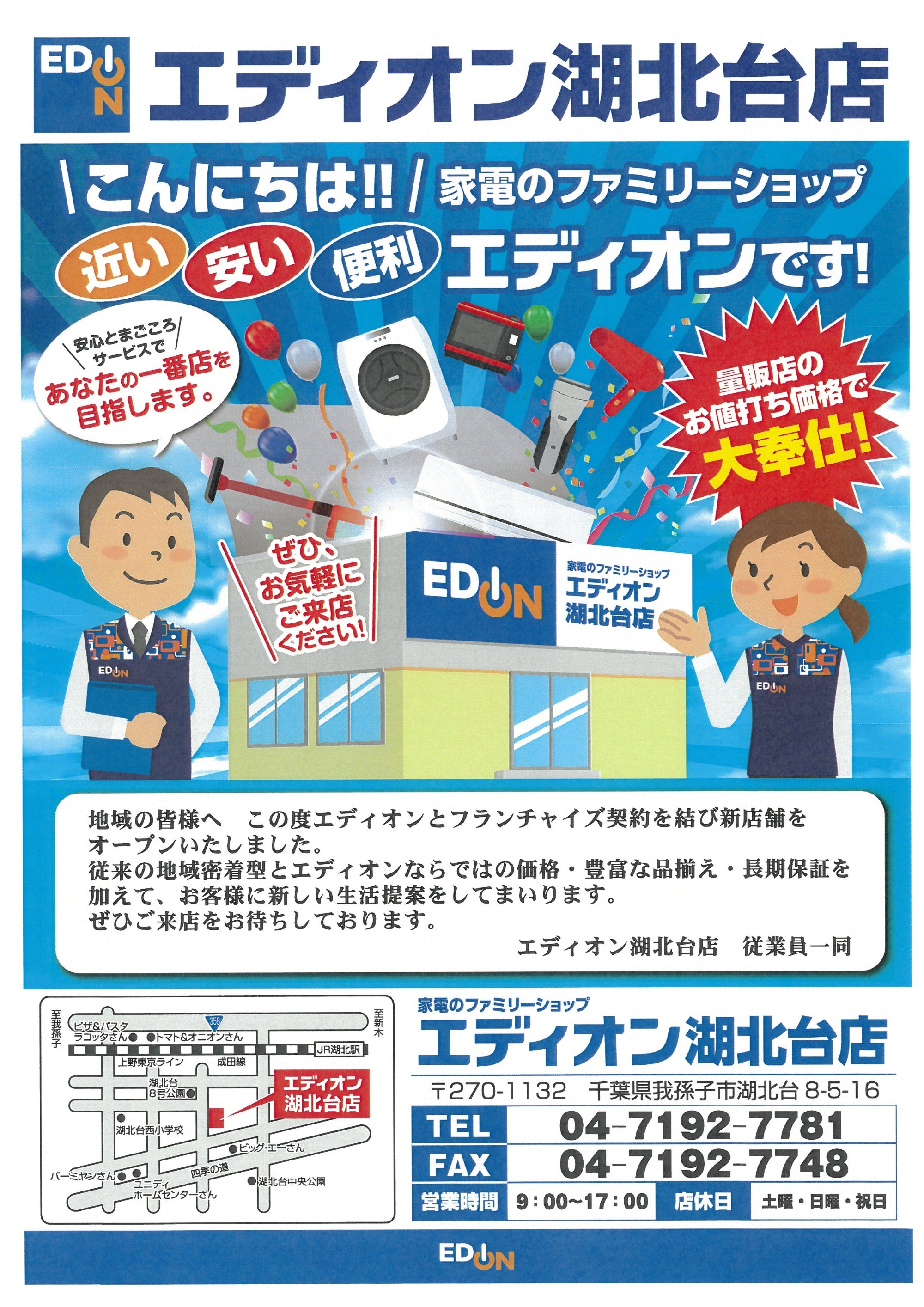エディオンのファミリーショップ エディオン湖北台店からお知らせ